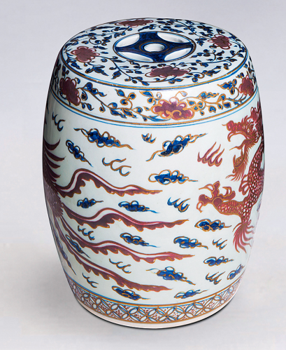 LOT:162 青花釉里红云龙纹墩