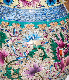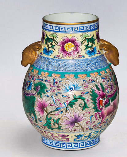 LOT:193 乾隆款珐琅兽耳麒麟纹樽