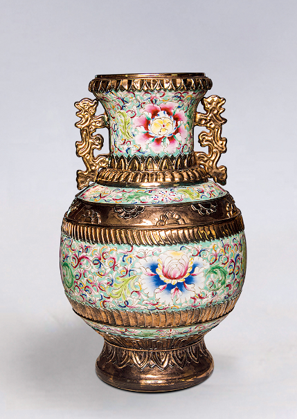 LOT:195 乾隆款描金花卉纹双龙耳大瓶