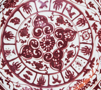 LOT:212 宣德款釉里红花卉纹盘